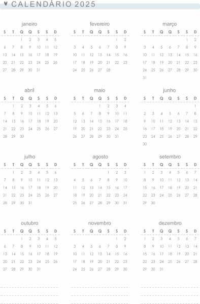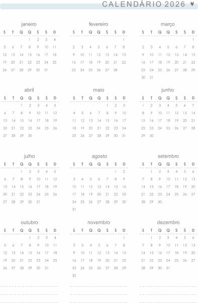 Calendários de 2025 e 2026
